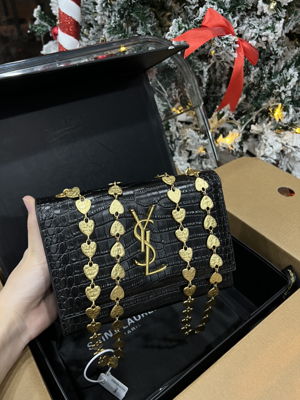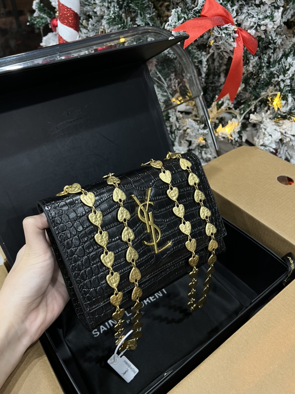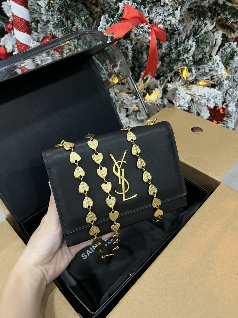 TÚI YSL SAINT LAURENT DA ĐEN KHÓA XÍCH TRÁI TYM ĐEO CHÉO CỰC ĐẸP