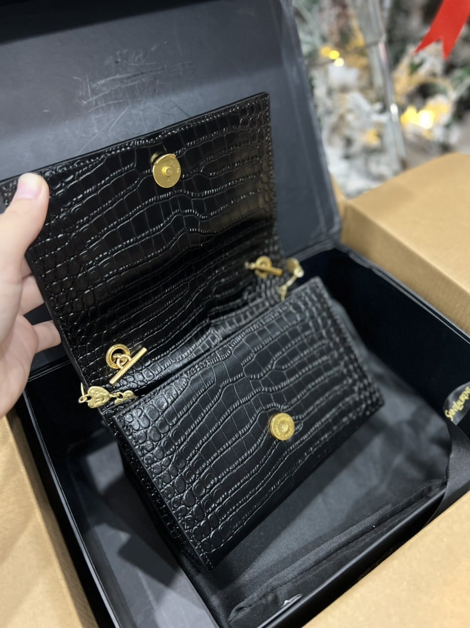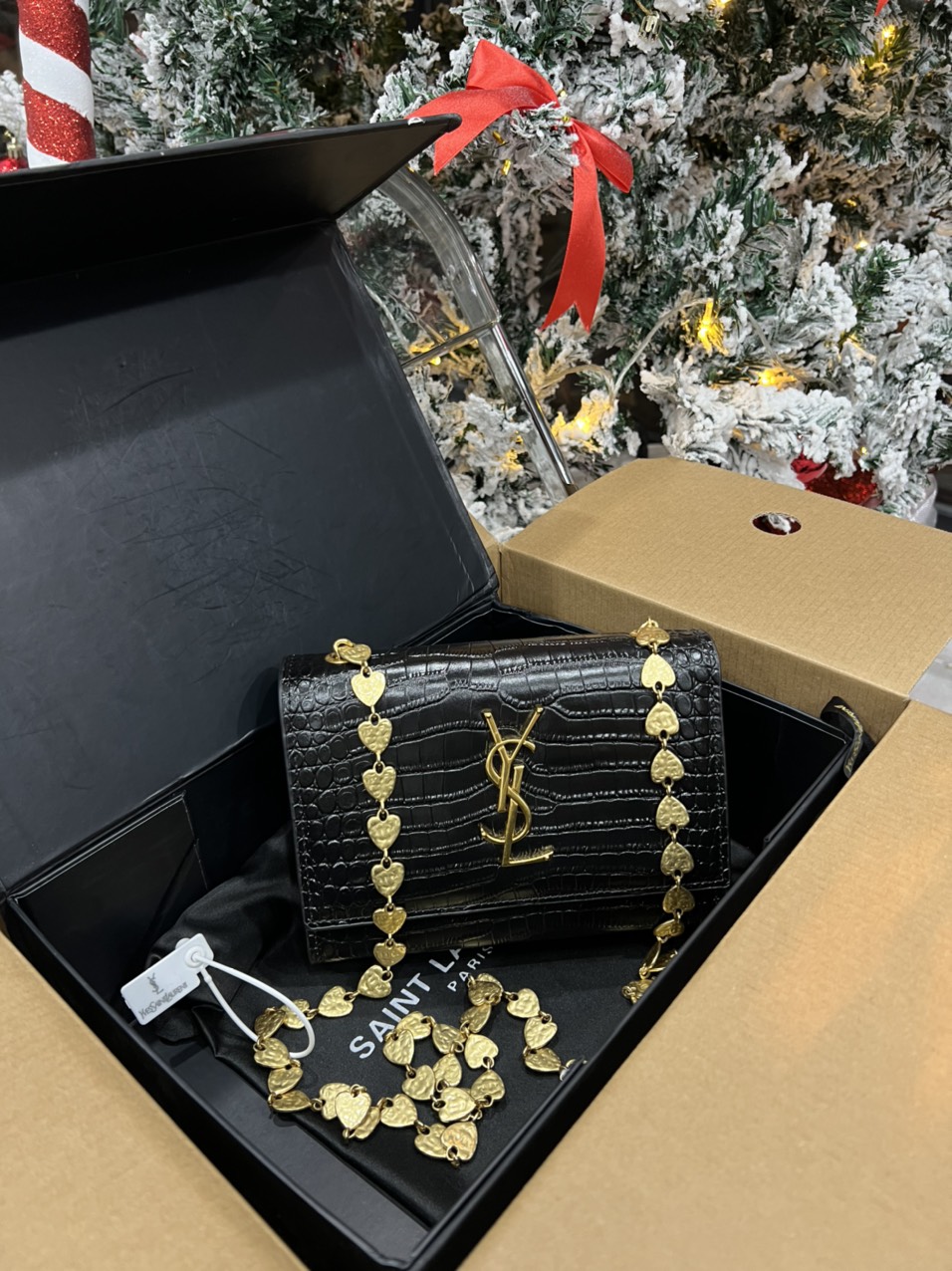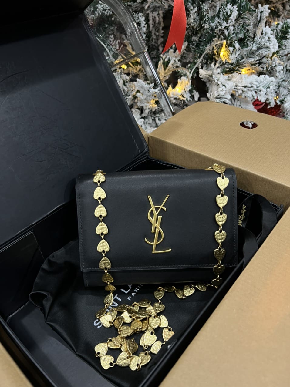 TÚI YSL SAINT LAURENT DA ĐEN KHÓA XÍCH TRÁI TYM ĐEO CHÉO CỰC ĐẸP