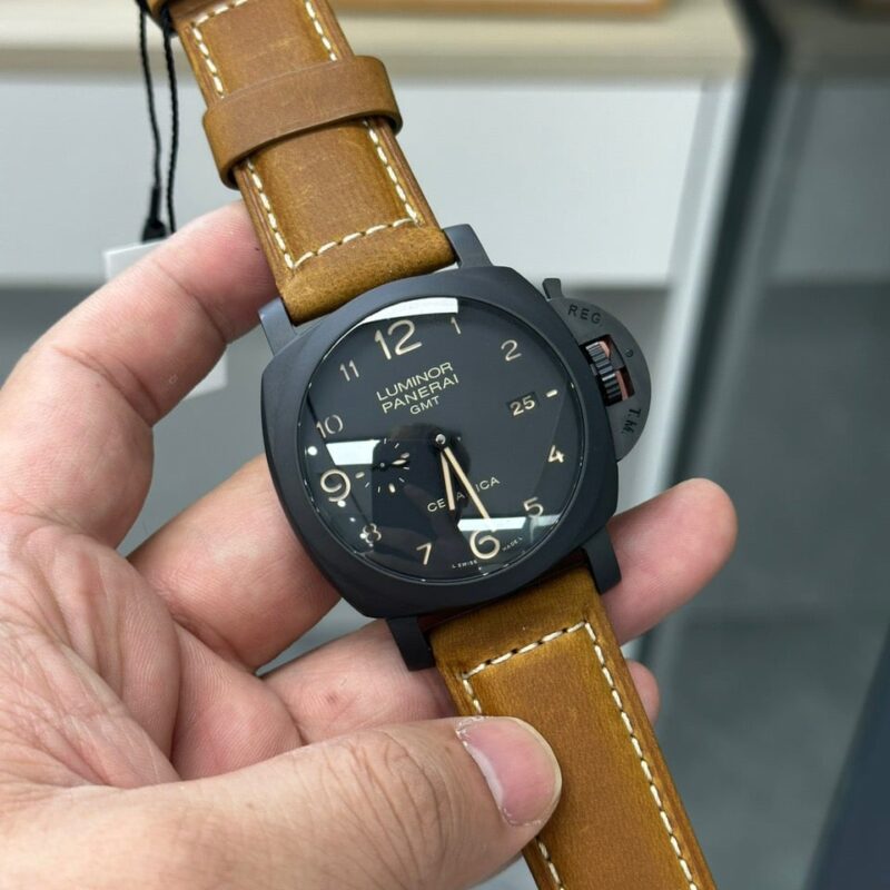 PANERAI LUMINOR GMT CERAMICA BLACK DIAL BROWN LEATHER STRAP BEST REPLICA 44MM